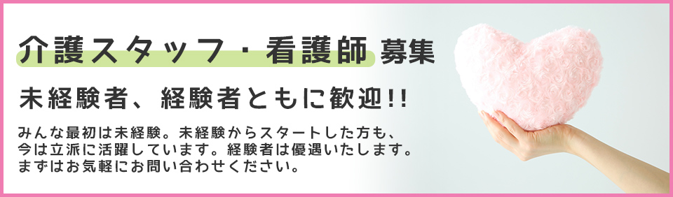 【1】介護士 日常生活のお世話(食事・入浴・トイレ等)やレクリエーション等。 【2】調理当番 利用者さまの朝食作り等。 【3】夜勤専従 利用者様の介護や見回りなど |